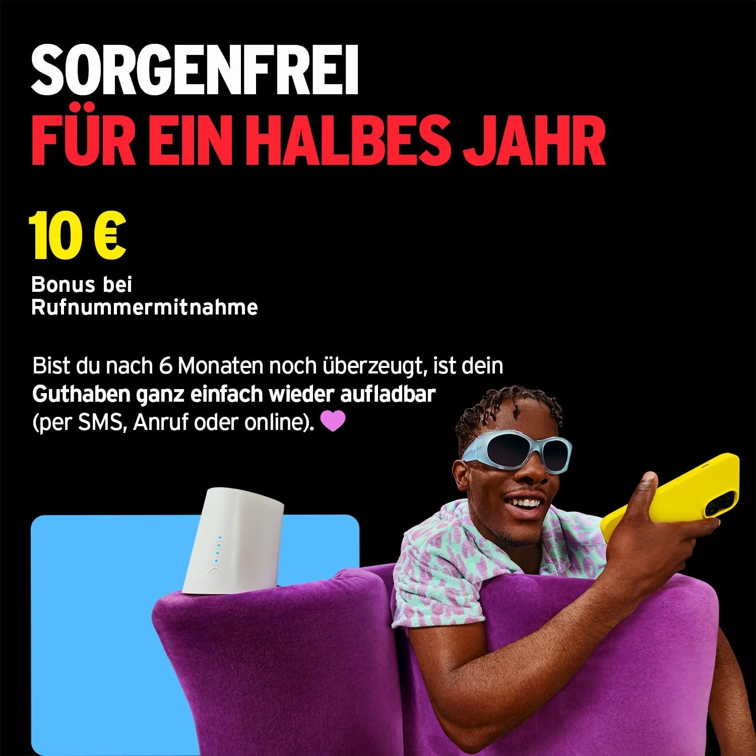 Movement & Art Direction for Congstar’s multi-year 360° rebrand (2023–2025), spanning multiple campaigns in stills and TVC.